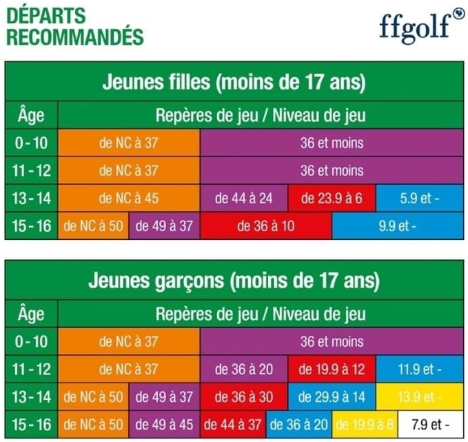 Jeunes Garçons : 8 joueurs classés par ordre au mérite jeune garçons – départs adaptés selon age/index(match sur 9 trous pour 1/4 et 1/2 finale)