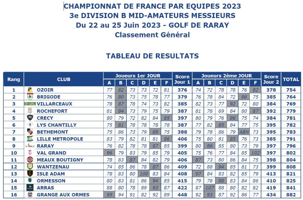 - Participation ou non à la division Mid-Amateurs 2 (+ 40 ans) en Dames et Messieurs