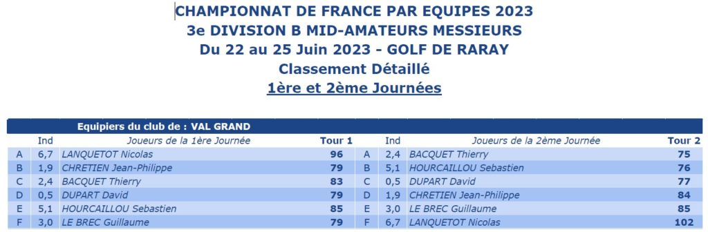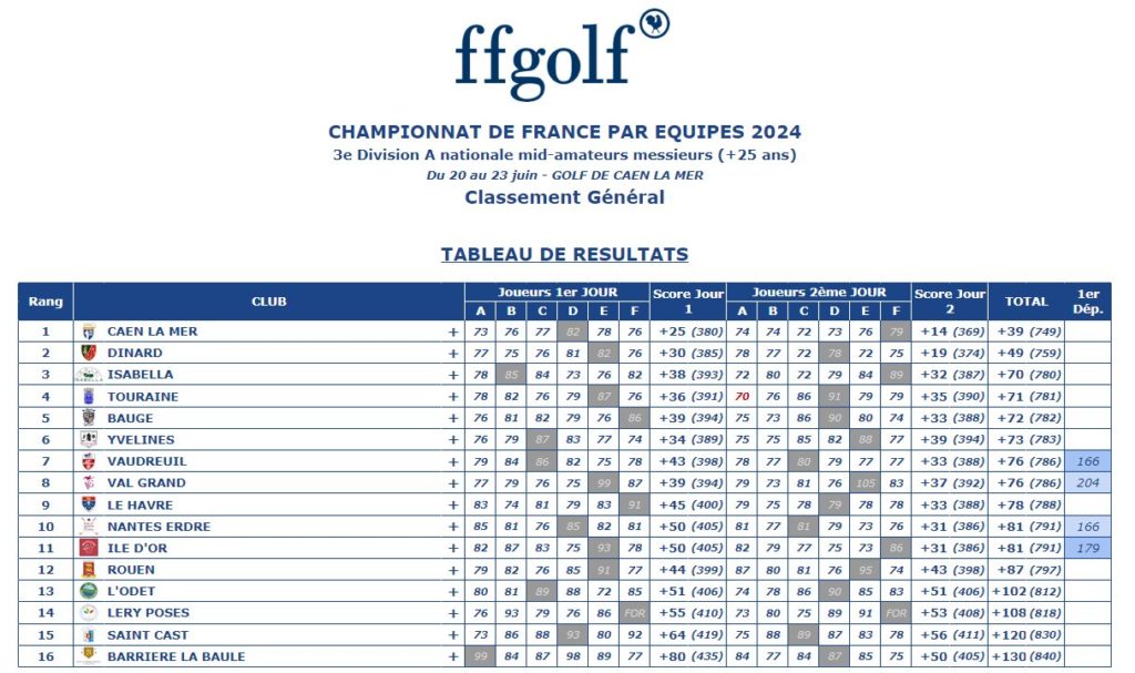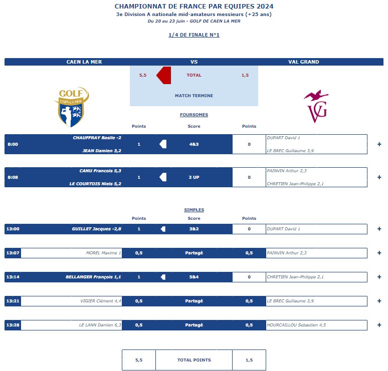 | 19/06/2025 au 22/06/2025 | 3ème Division Mid-Amateurs Messieurs – Poule A | Cyril | St Cast |